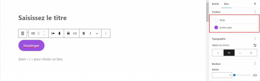 3. Vous pouvez personnaliser son apparence à l’aide de la barre d’outils du bloc.