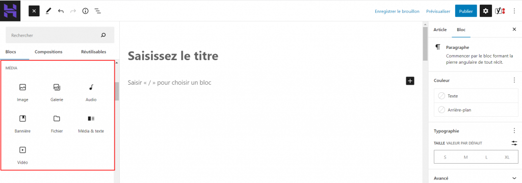 Gutenberg fonctionne en offrant une variété d’outils et de blocs prédéfinis qui vous permettent de créer des publications riches en médias. Les outils incluent des fonctions avancées de contrôle du formatage et de la mise en page, ainsi que des styles personnalisés pour le texte et les images.