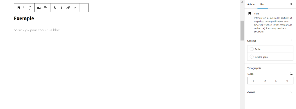 2. La liste des blocs WordPress disponibles apparaît. Cliquez sur Titre.