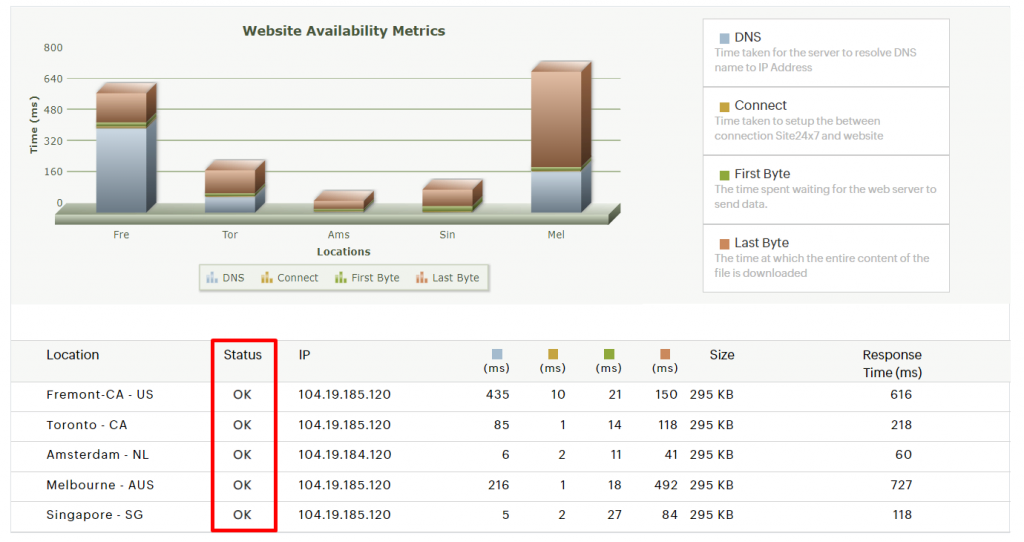 Si vous ne pouvez pas accéder à votre site après avoir changé l’emplacement de votre serveur, cela signifie que votre site est down dans cette zone spécifique. Essayez de vérifier à partir de différents endroits pour vous assurer que votre site est disponible sur l’ensemble des serveurs.