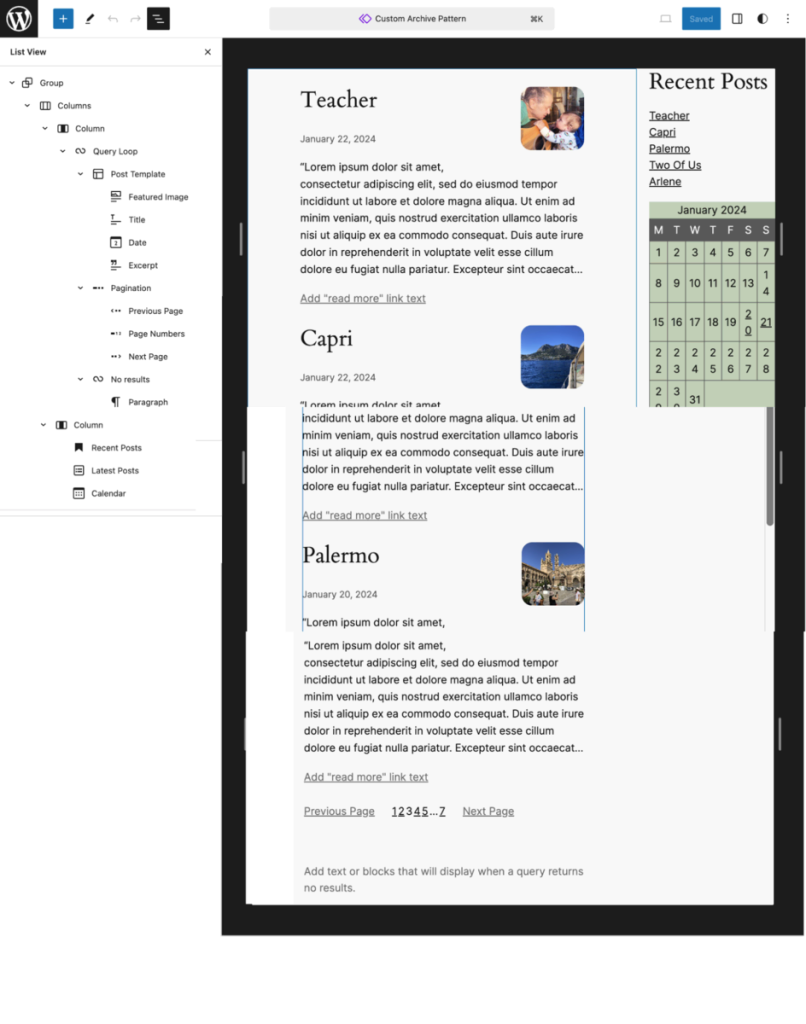 Il n’est pas surprenant que Twenty Twenty-Four convienne parfaitement aux blogueurs. Il est livré avec sept compositions qui peuvent être utilisées pour la page d’accueil du blog (page d’archives).