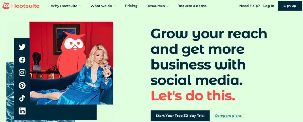 Hootsuite adalah tool digital marketing dan media sosial yang ideal untuk bisnis dan agensi. Dari satu dashboard, Anda bisa merencanakan dan menjadwalkan postingan di berbagai jejaring sosial, seperti Twitter, Instagram, dan Facebook.