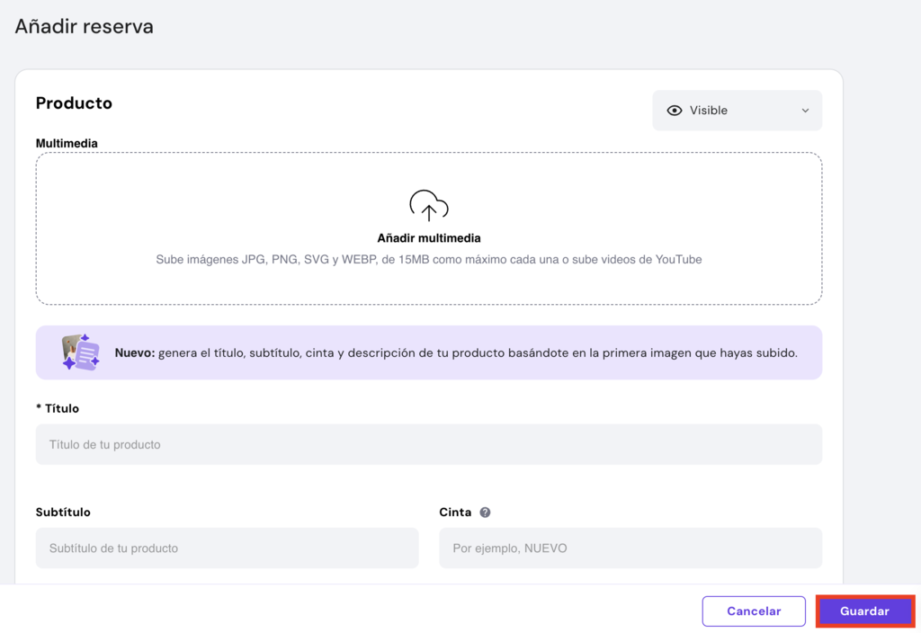 Te recomendamos que elijas Reservas para poder programar sesiones fotográficas fácilmente. Activa la función de cita y empieza a añadir tus datos. Cuando hayas terminado, haz clic en Guardar.