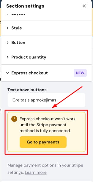 When you enable Express checkout, your domain is automatically submitted to Stripe — no manual steps in Stripe needed.