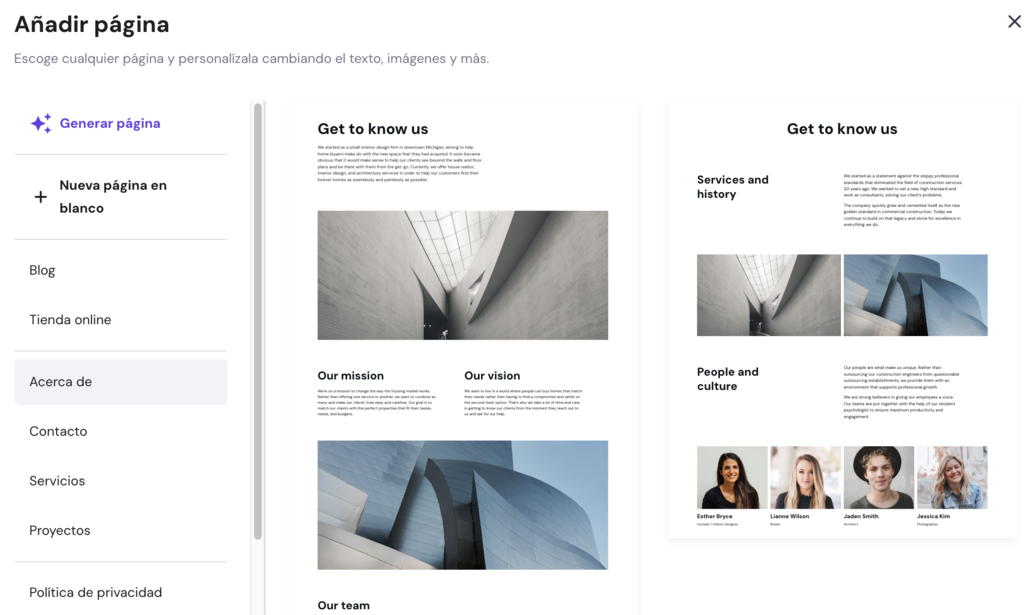 Alternativamente, un creador web como el Creador de páginas web de Hostinger proporciona una solución todo en uno para la creación de páginas.