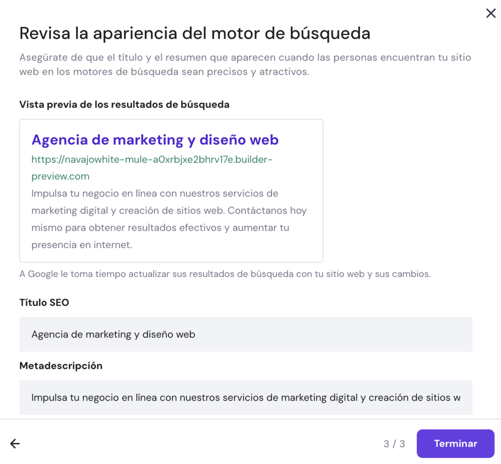 Un sitio web personalizado con funciones complejas puede tardar unos días en personalizarse según tus necesidades.