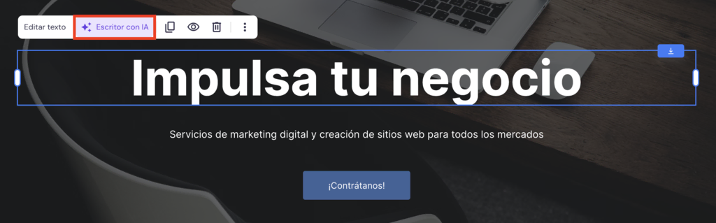 En el primer paso has aprendido a insertar nuevos elementos en tu sitio web. Los siguientes pasos te mostrarán cómo aprovechar las herramientas de IA integradas de Hostinger para llenar tu sitio con contenidos atractivos: