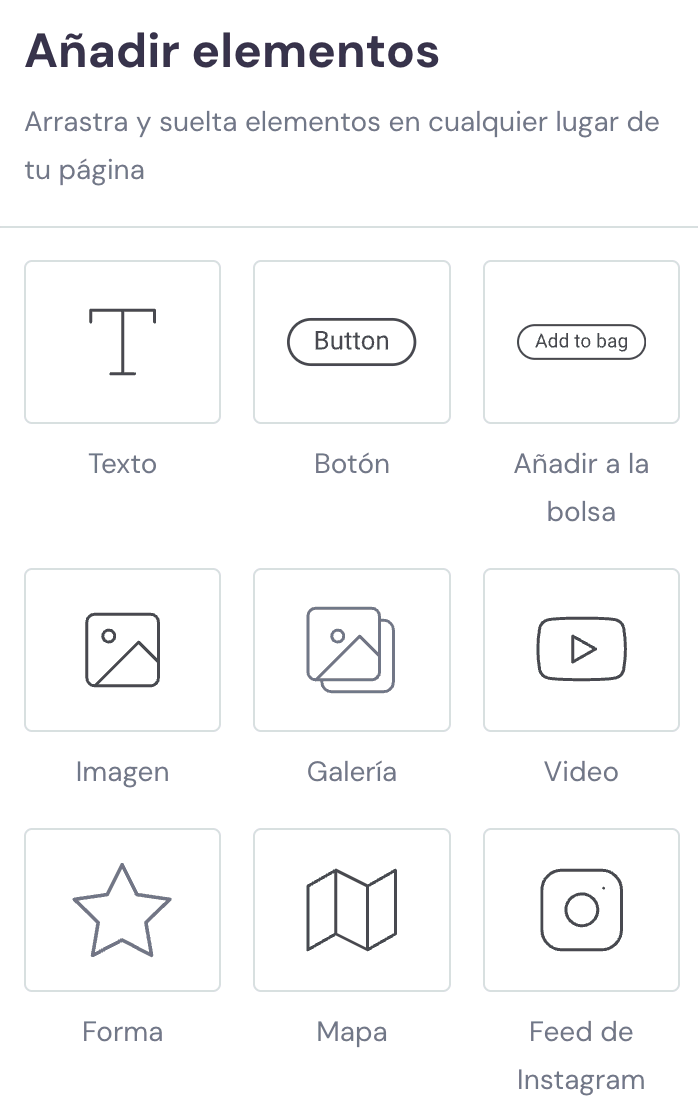 - Para insertar un nuevo elemento, haz clic en el botón (+) de la barra lateral y arrastra y suelta una de las opciones disponibles en el editor.