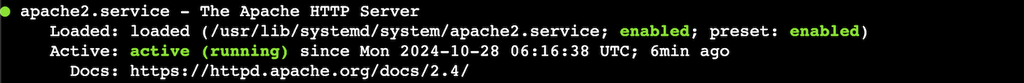 Comprueba el estado del servidor web, que debe aparecer como activo (en ejecución) y habilitado: