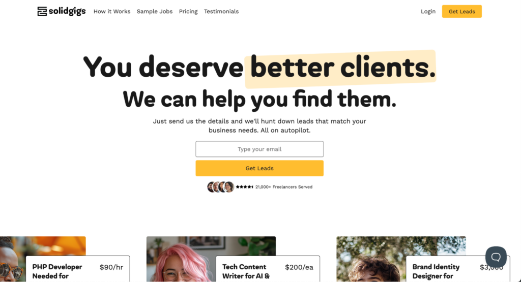 SolidGigs simplifica el proceso de encontrar oportunidades de freelance de alta calidad al hacer el trabajo preliminar por ti.