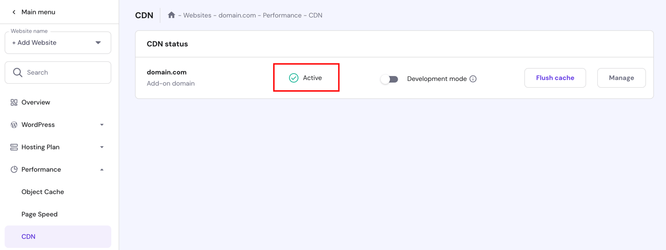 If you’re using Hostinger’s Business plan or any of our cloud hosting services, you can enable the built-in CDN via Performance → CDN in hPanel.