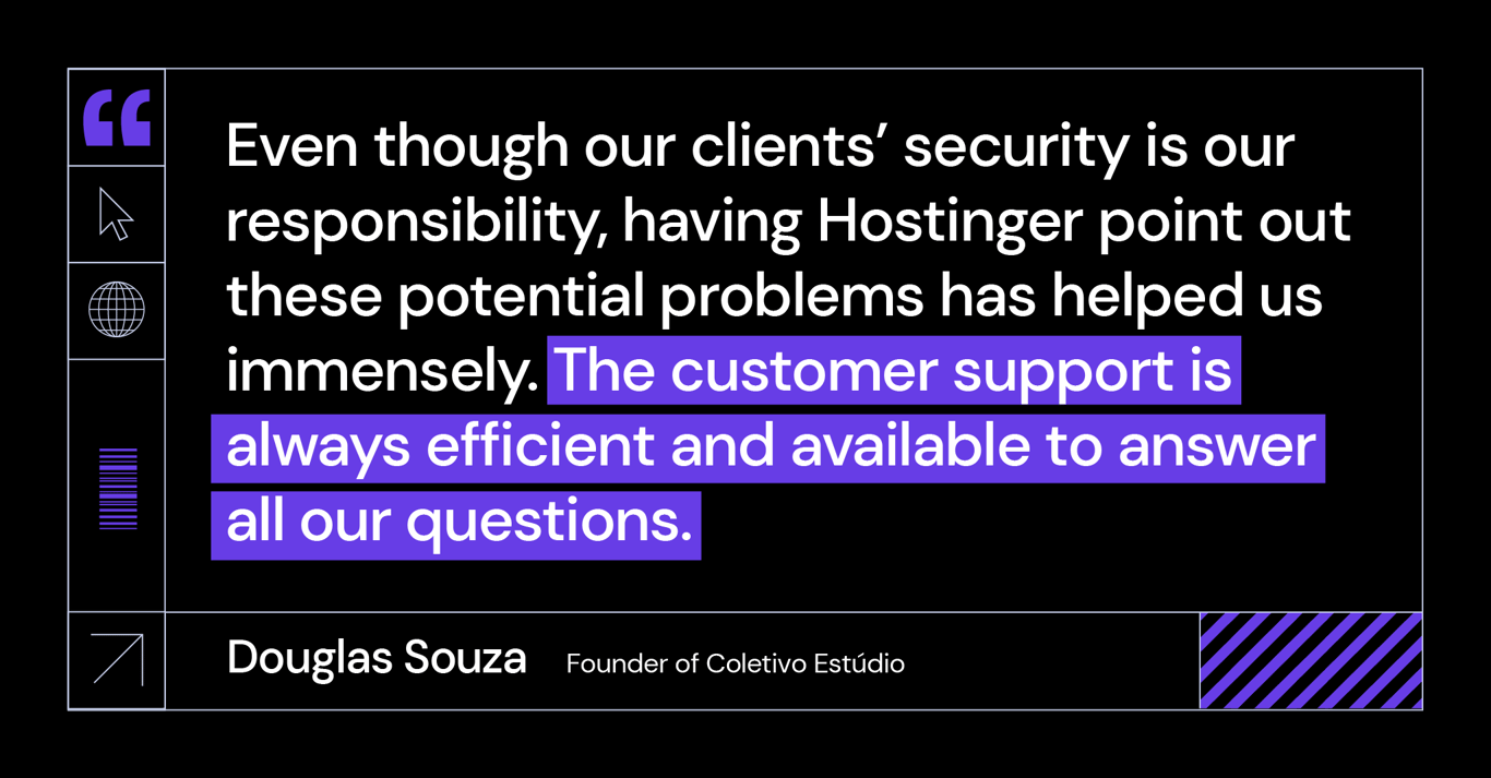 “We saw immediate security improvements after moving to Hostinger, which convinced us to migrate all of our clients,” Douglas shared.