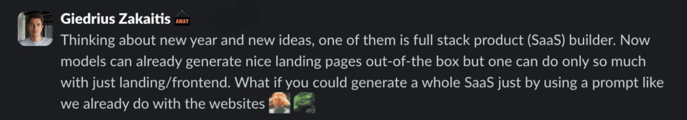 Here’s a message that became the starting point for Hostinger Horizons, shared by Giedrius Zakaitis, Head of Product, on December 23, 2024: