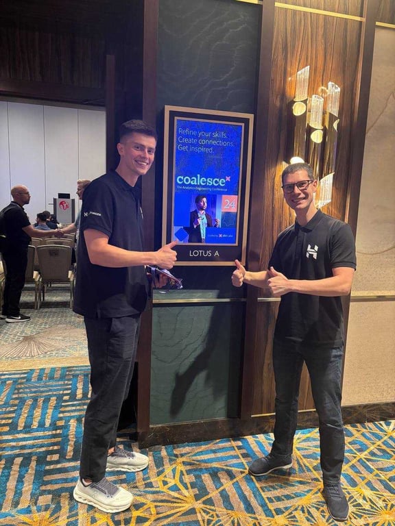 Our Data Platform Team participated in Coalesce 2024, Las Vegas, the premier conference for analytics engineers. Coalesce brings together data practitioners to sharpen their skills, connect with peers, and get inspired about the future of data. Our Analytics Engineering Lead, Valentinas Mitalauskas, and Analytics Engineer, Augustinas Karvelis, participated in this event and presented insights and highlights on how we use dbt (data build tool) to improve our data accuracy and drive growth.