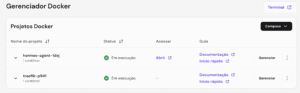 cd /docker/hermes-agent-xxxx/Troque xxxx pelo identificador do projeto que aparece no seu Gerenciador Docker.