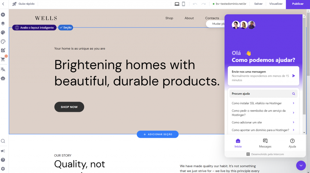 Criador de sites da Hostinger: publique seu site num piscar de olhos