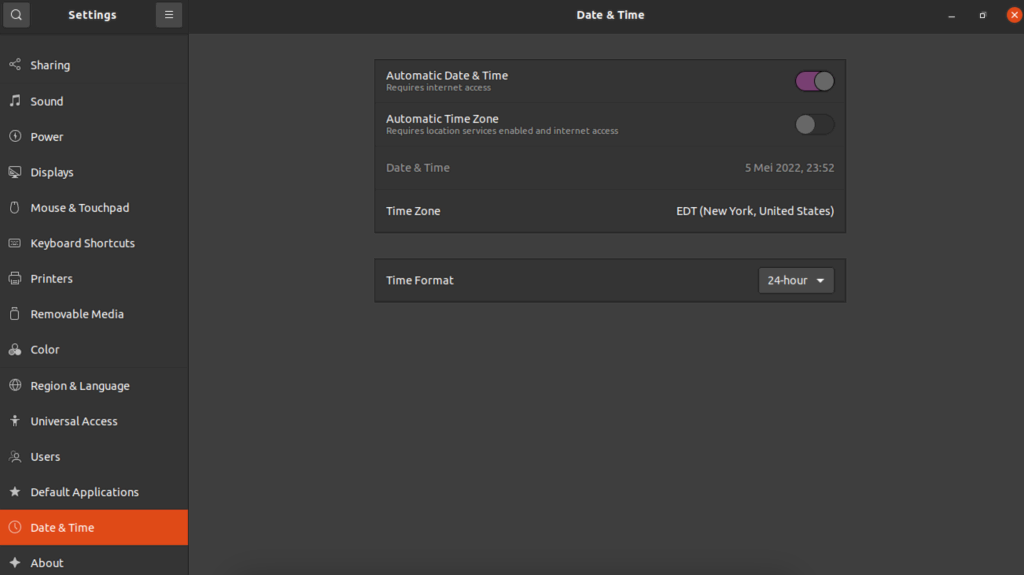 La forma más conveniente de establecer la zona horaria en Ubuntu es a través de la interfaz gráfica de usuario (GUI). Dado que es accesible desde el escritorio, los usuarios no tienen que ejecutar ningún comando.