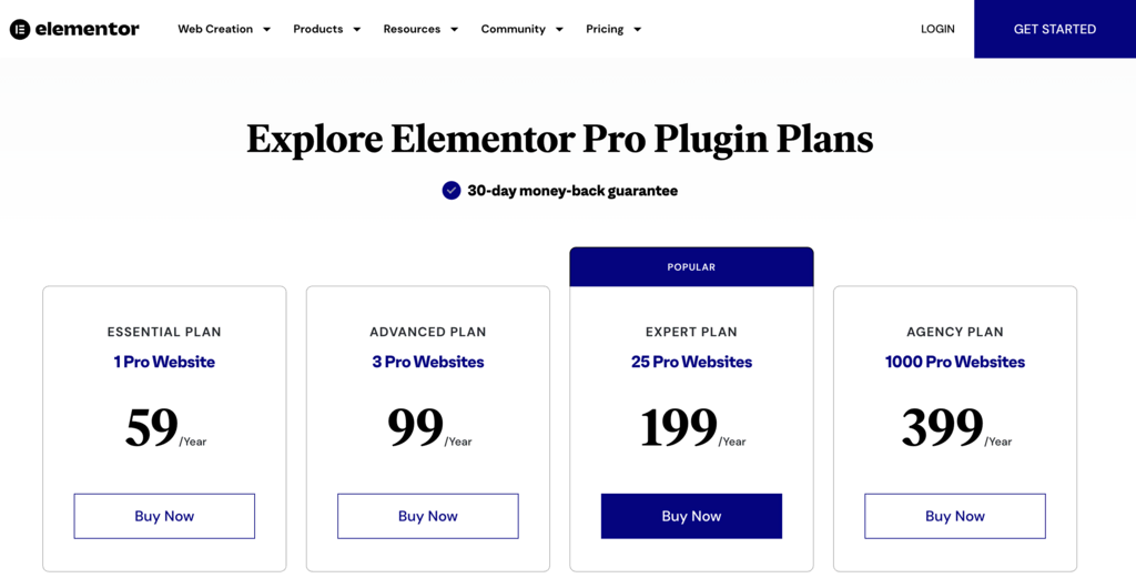 Es gibt auch hier zwei Preismodelle – ein Abonnement und eine einmalige Gebühr. Der Preis für ein Plugin auf CodeCanyon beginnt bei 6 € für eine lebenslange Lizenz. Er kann aber auch höher liegen, wie bei Elementor Pro, das zwischen 59 US$/Jahr und 999 US$/Jahr liegt.