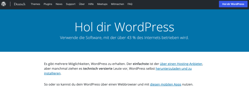 Wenn wir über WordPress sprechen, beziehen wir uns hauptsächlich auf WordPress.org, die selbst gehostete WordPress-Version. Dabei handelt es sich um die von unabhängigen Mitwirkenden entwickelte kostenlose Content-Management-System-Software, die Sie herunterladen und auf Ihrem Webhosting installieren können, um eine WordPress-Website zu erstellen.