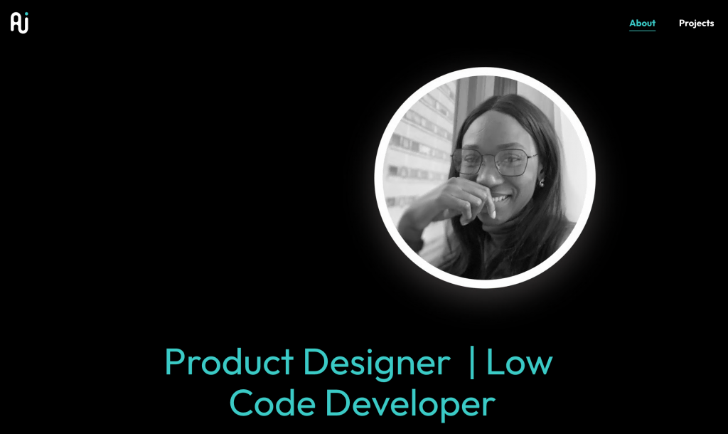 Effektive Über-uns-Seiten zu erstellen beginnt damit, Ihre persönliche oder Unternehmensgeschichte zu teilen. Die About-me-Page von Anulika Nwankwo gibt einen klaren und prägnanten Überblick über Nwankwos beruflichen Werdegang und etabliert ihre persönliche Marke als Produktdesignerin und Low-Code-Entwicklerin.