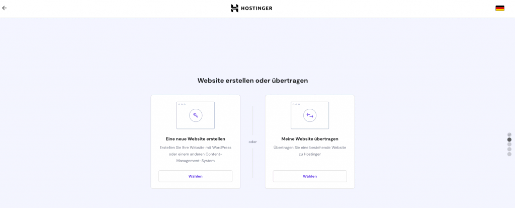 Sobald Sie das Hosting geklärt haben, navigieren Sie zum Websites-Menü im hPanel und erstellen eine neue Website.