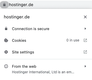 Klicken Sie auf das Schloss-Symbol, um detaillierte Informationen über das digitale Zertifikat anzuzeigen, z. B. den Aussteller und das Gültigkeitsdatum. So sieht es in Google Chrome aus: