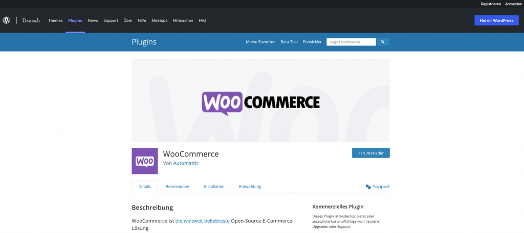 WooCommerce ist eine Open-Source-eCommerce-Plattform, die eCommerce-Funktionen in eine WordPress-Website implementiert. Sie bietet mehr als 500 Erweiterungen für Ihre eCommerce-Lösungen und verfügt über integrierte Analysefunktionen, die bei der Entwicklung von Marketingstrategien hilfreich sein können.