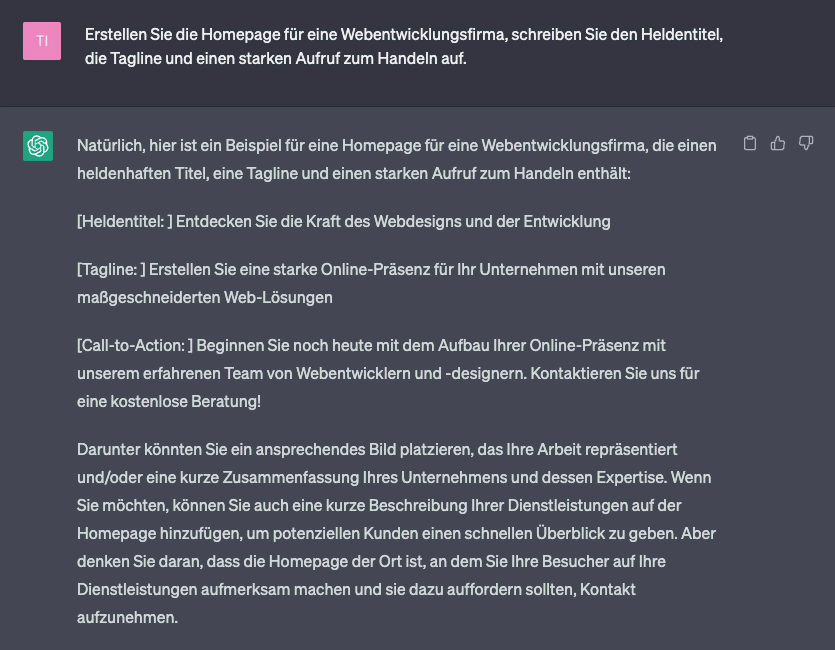Generieren Sie Website-Inhalte mit ChatGPT