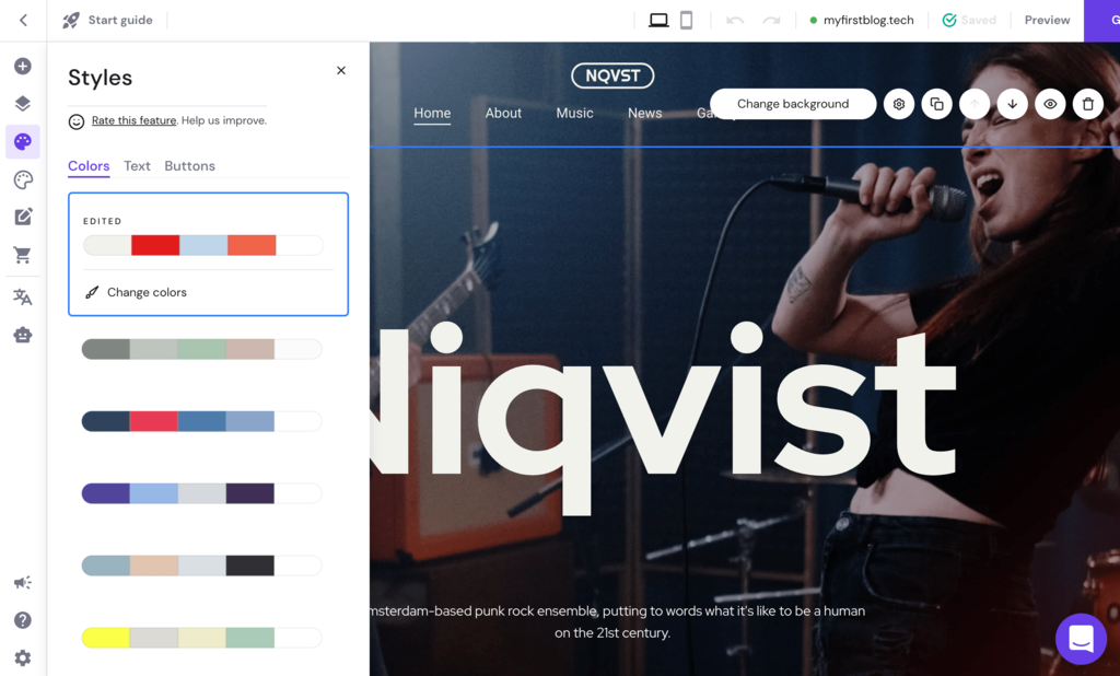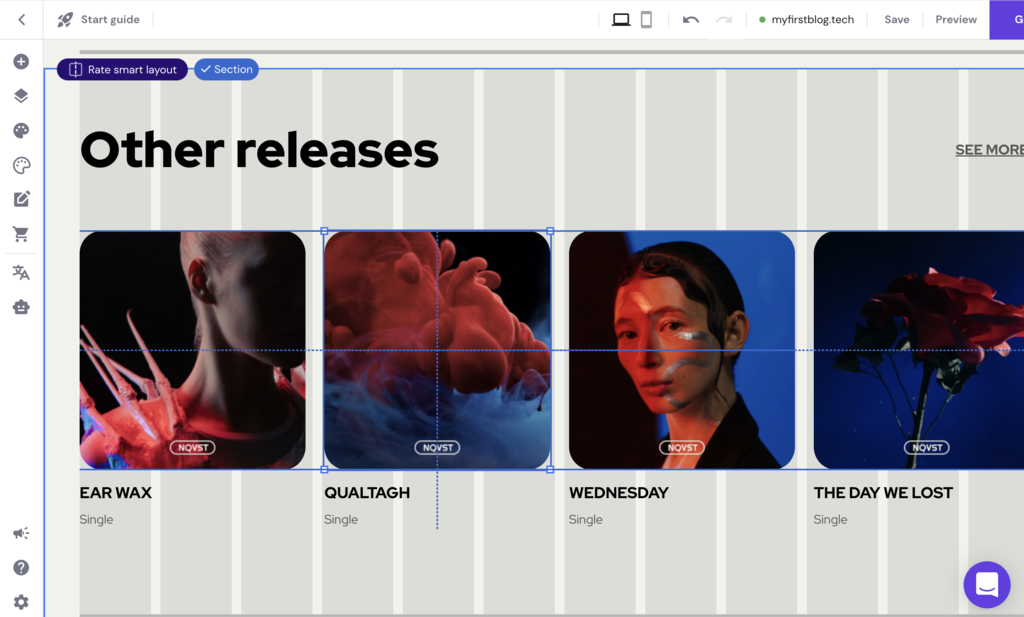 Beachten Sie, dass die visuellen Elemente für die Website relevant sein müssen. Andernfalls werden sie die Besucher nur ablenken und verwirren. Der Drag-and-Drop-Editor des Website-Builders erleichtert die Anpassung der Layouts der visuellen Elemente.
