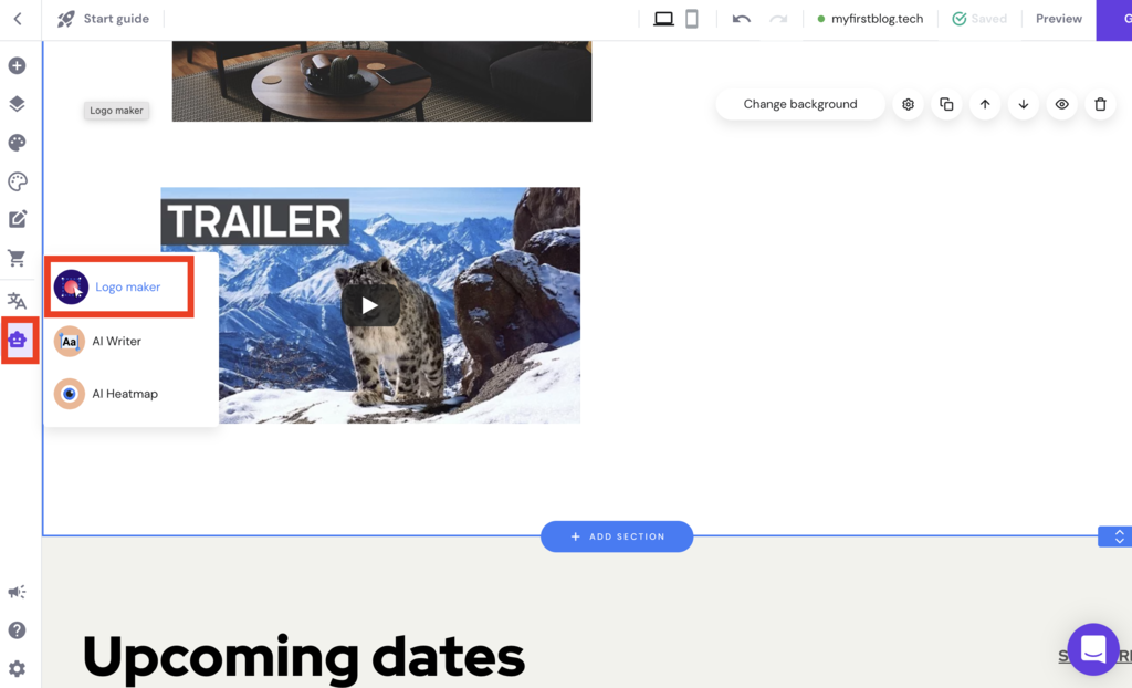 Um ein neues Logo zu erstellen, klicken Sie auf KI Tools und wählen Sie Logo Maker.