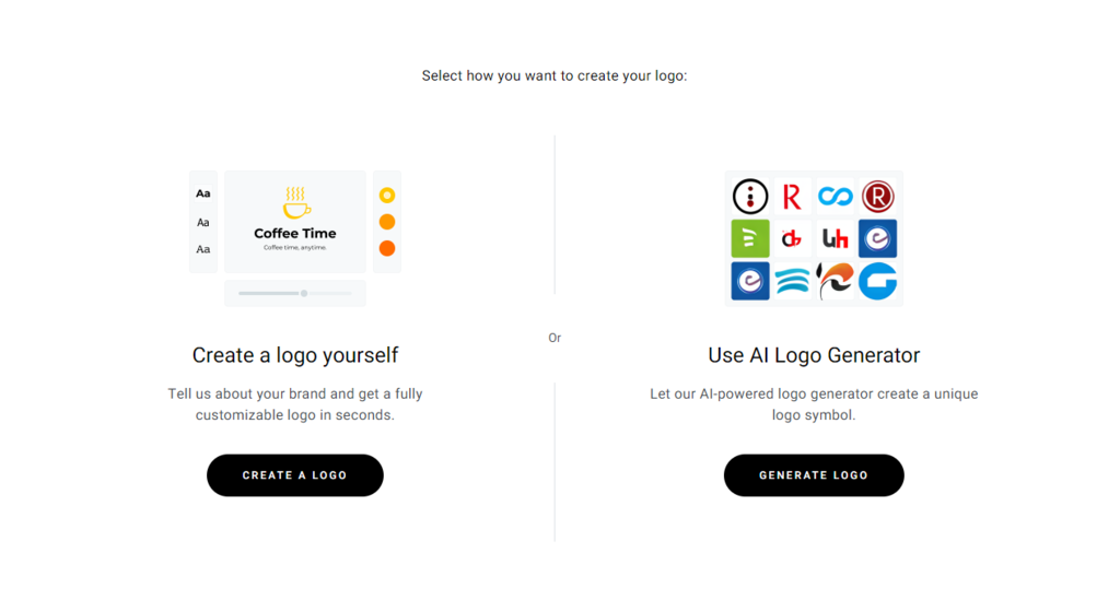 Wählen Sie dann, wie Sie Ihr Logo erstellen möchten: