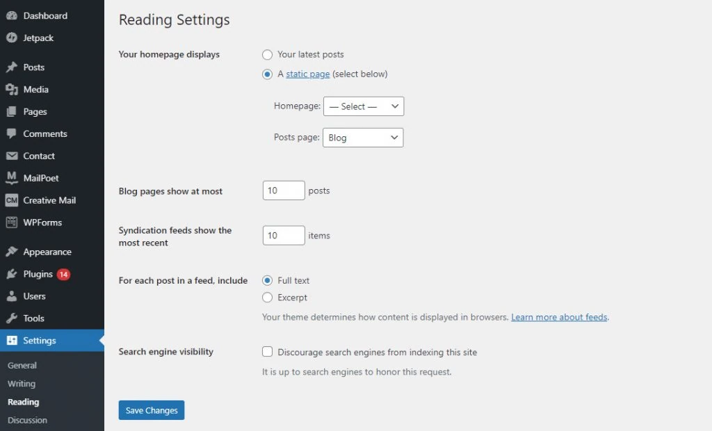 Gehen Sie einfach zu Einstellungen -> Anzeige und wählen Sie eine statische Seite, neben dem Abschnitt Deine Website zeigt an. Wählen Sie die leere Blogseite im Abschnitt Artikelseite aus und klicken Sie auf Änderungen speichern. Jedes Mal, wenn Sie Blogbeiträge hinzufügen, zeigt WordPress diese automatisch auf der Blogseite an.