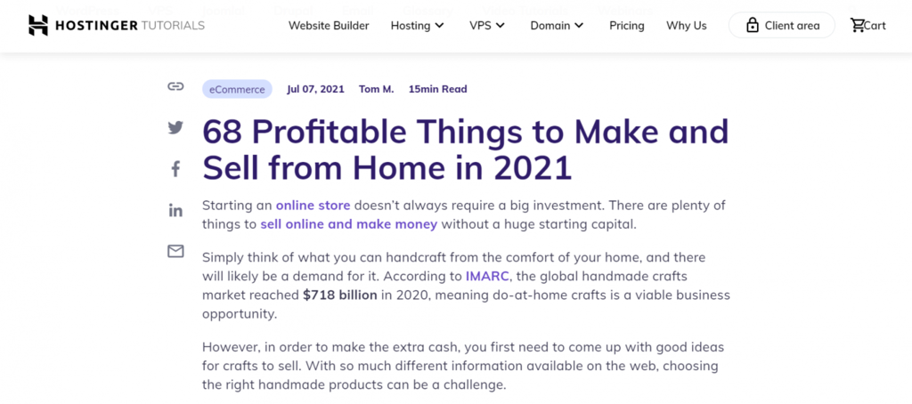 - Fügen Sie Nummern hinzu – wenn Sie einen Listenbeitrag erstellen, sollten Sie darüber nachdenken, Nummern in die Überschrift aufzunehmen, da eine Überschrift mit einer Zahl besser abschneidet als andere Arten von Überschriften. Zusätzlich kann das Einbeziehen einer Zahl den Lesern anzeigen, wie lang ein Artikel sein wird. Hier ist ein Beispiel dafür, wie wir eine Zahl in unserem Tutorial über gewinnbringende Dinge, die man herstellen und verkaufen kann verwendet haben: