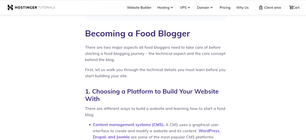 Hier ist ein Beispiel für eine Überschrift und Unterüberschrift in unserem Artikel darüber, wie man einen Food-Blog startet: