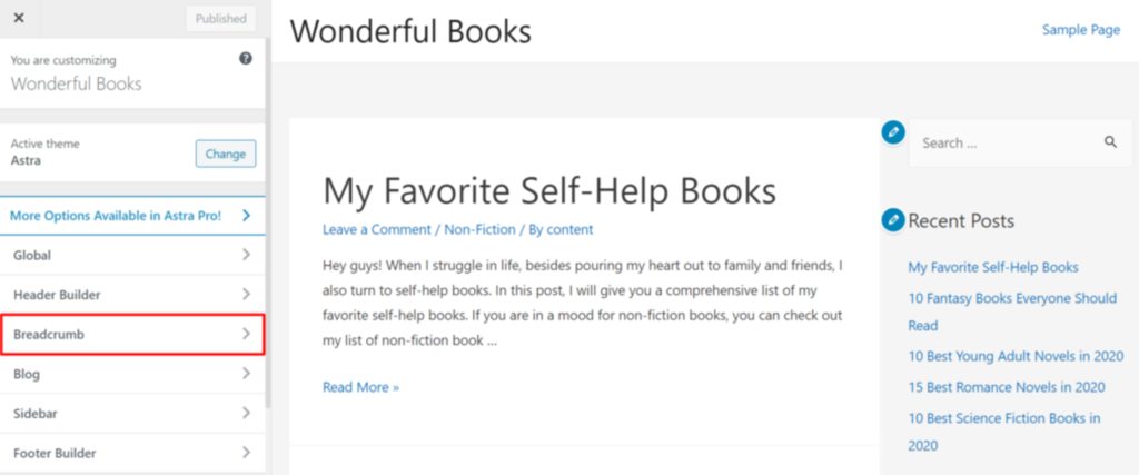 Um Breadcrumbs zu Ihrer Website mit Astra hinzuzufügen, folgen Sie diesen Schritten: