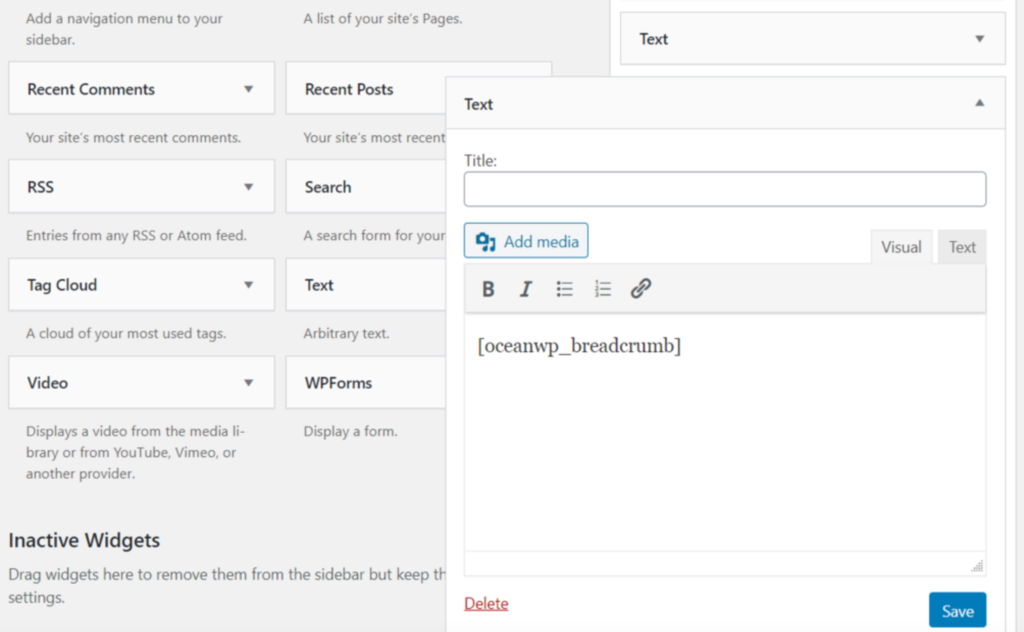 Fügen Sie [oceanwp_breadcrumb] ein.