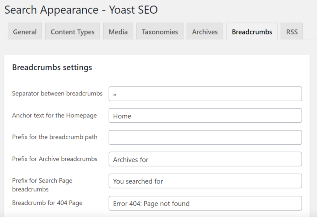 Passen Sie die allgemeinen Einstellungen Ihrer Breadcrumb-Links an.
