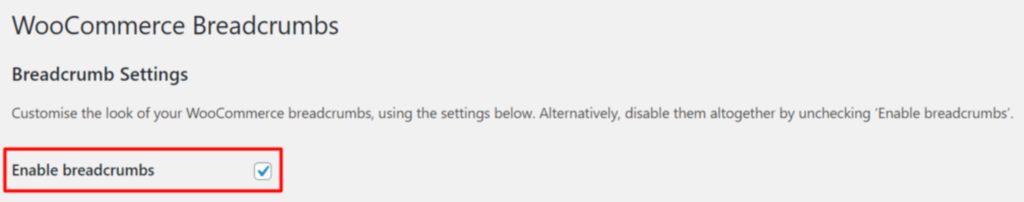 Scrollen Sie nach unten und aktivieren Sie Breadcrumbs in Ihrem Theme.