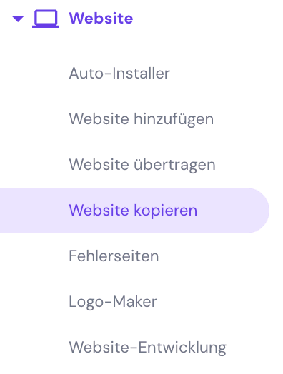 Denken Sie daran, dass die Funktion „Website kopieren” nur funktioniert, wenn beide Domains bei Hostinger gehostet sind. Es ist auch wichtig zu beachten, dass E-Mail-Konten, FTP-Konten und SSH-Schlüssel nicht kopiert werden.
