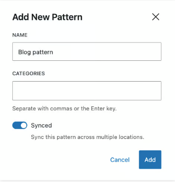 - Synchronisierte Muster. Das sind wiederverwendbare Inhaltsblöcke, die auf Ihrer gesamten Website miteinander verknüpft sind. Alle Änderungen, die Sie an einem synchronisierten Muster vornehmen, werden automatisch überall aktualisiert, wo das Muster verwendet wird – ideal für konsistente Elemente wie Banner, Call-to-Action-Bereiche oder Header.
