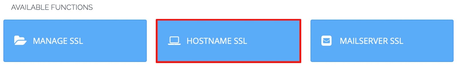 Tan pronto como se agregue el dominio deseado al panel, en la sección Funciones disponibles, haz clic en SSL y elige Nombre de host SSL: