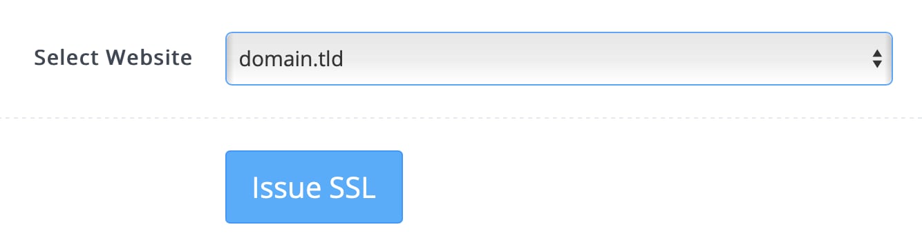 Elige el nombre de dominio y haz clic en Emitir SSL: