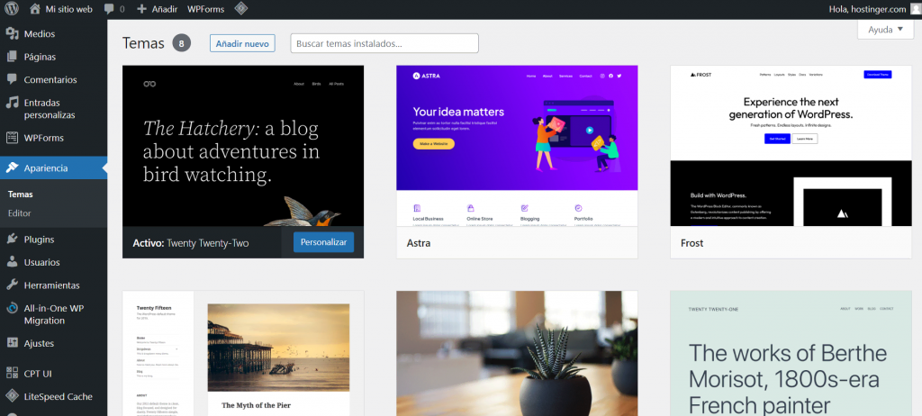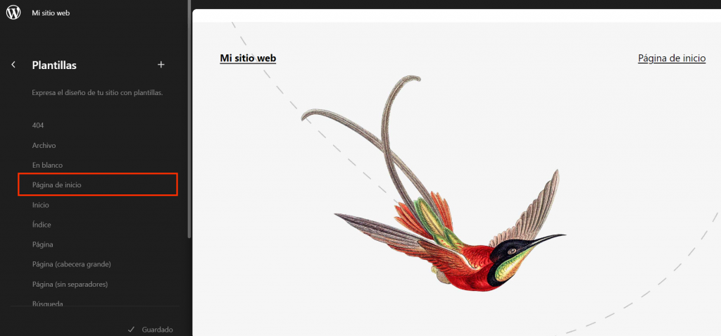 Si necesitas cambiar la apariencia de la página, házlo a través del menú Páginas o configura una nueva página estática siguiendo los mismos pasos.