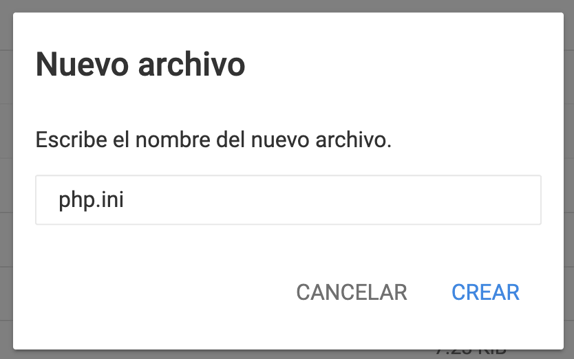 - Accede al directorio public_html y localiza el archivo php.ini. Si aún no lo tienes, haz clic en Nuevo Archivo y nómbralo php.ini.