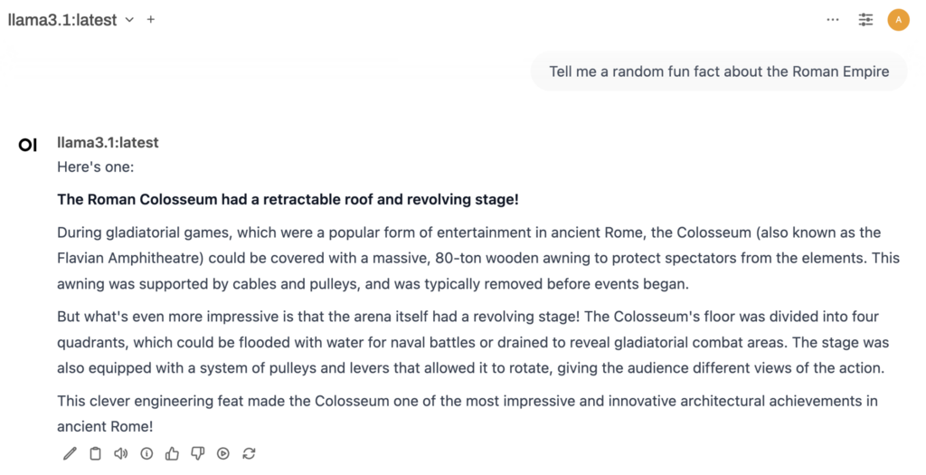 A diferencia del uso de Ollama a través de la interfaz de línea de comandos (CLI), la combinación de esta herramienta LLM con Open WebUI te permite cambiar de modelo a mitad de conversación para explorar diferentes resultados dentro del mismo chat.