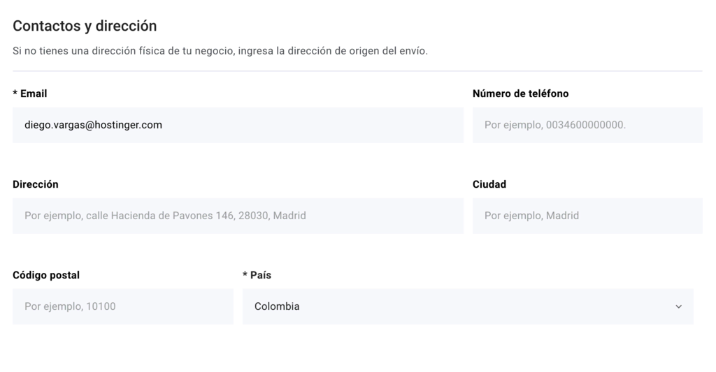 Después, ve a Configuración de la tienda → Información de la empresa, introduce el nombre de tu marca y sube el logotipo. No olvides incluir tus datos de contacto para ofrecer una comunicación fluida con el cliente.