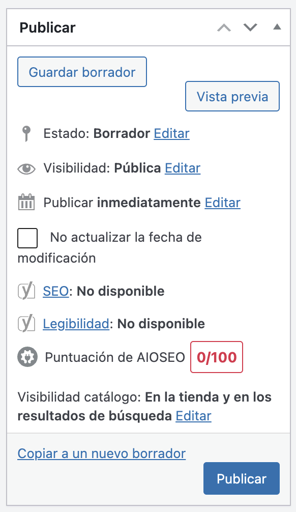 - Haz clic en el botón Vista previa dentro de la sección Publicar para ver el aspecto de la página de producto. Cuando estés satisfecho con el resultado, pulsa Publicar.