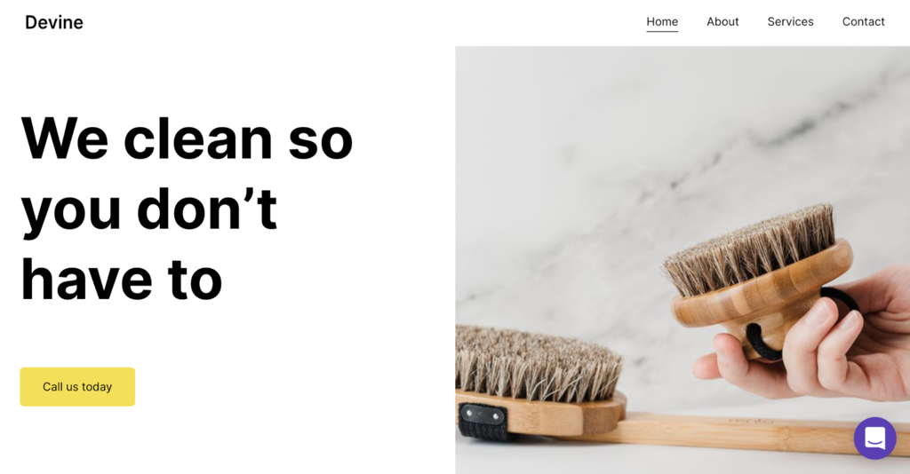 Además, hay secciones prediseñadas que son fácilmente reemplazables con su propio contenido. Por ejemplo, la plantilla para negocios Devine tiene una página preparada para enumerar todos los servicios ofrecidos.