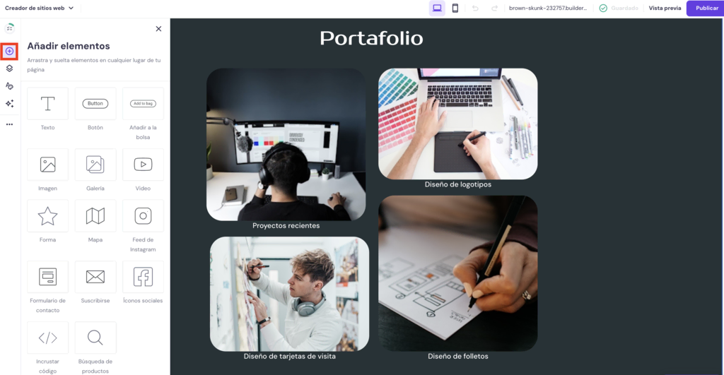 El Creador de páginas web de portafolios de Hostinger ofrece una solución integral que puede ayudar a los diseñadores gráficos a crear, alojar y mantener todo su portafolio en línea con facilidad.