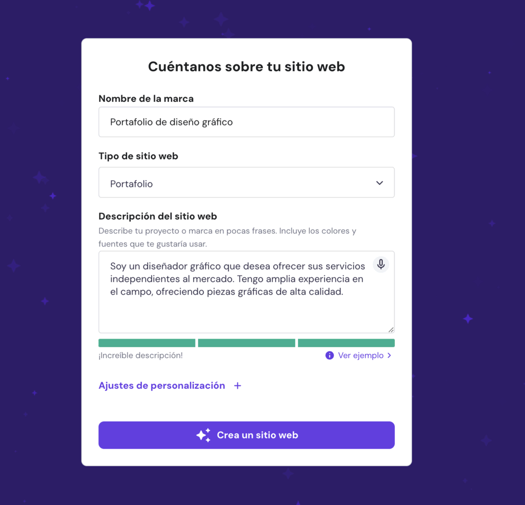- Creador web con IA: los diseñadores pueden generar su propio portfolio de diseño gráfico, completo con texto y contenido de marcador de posición, utilizando nuestro Creador con inteligencia artificial.